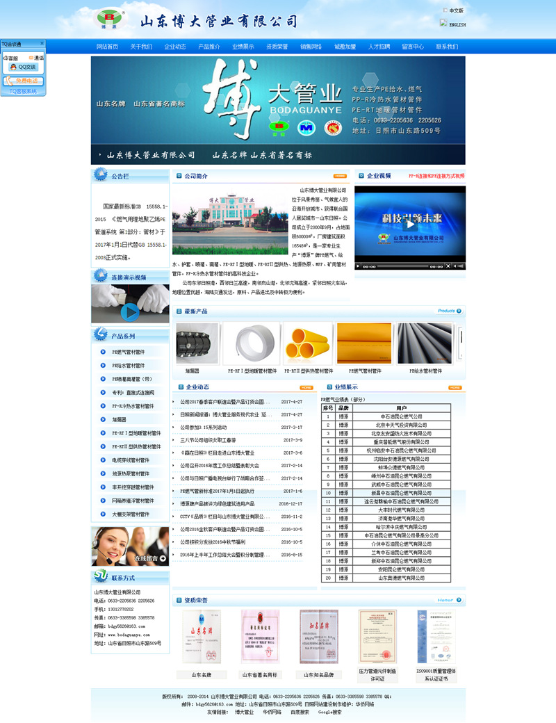 公司是中國城市燃氣協(xié)會、中國塑料加工工業(yè)協(xié)會塑料管道專業(yè)委員會會員單位。公司被評為全國誠信守法民營企業(yè)、全國重質量守信譽先進單位、山東省高新技術企業(yè)、山東省重合同守信用企業(yè)、山東省消費者信得過單位、日照市優(yōu)秀民營科技企業(yè)、日照市AAA信用企業(yè)、日照市行業(yè)領軍品牌、日照市質量管理先進企業(yè)。公司生產的“博源”牌系列產品榮獲“山東名牌”、“山東著名商標”“知名品牌”稱號。
