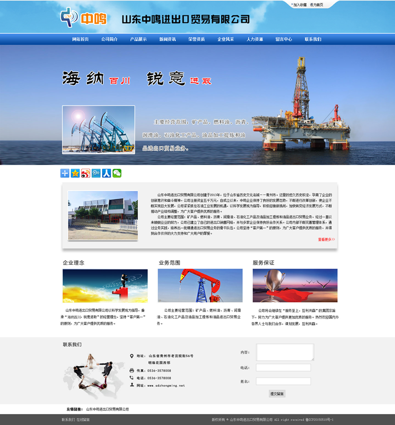 山東中鳴進(jìn)出口貿(mào)易有限公司創(chuàng)建于2013年,位于山東省歷史文化名城——青州市。這里的悠久歷史積淀,孕育了企業(yè)的創(chuàng)新意識(shí)和奮斗精神。公司注冊(cè)資金五千萬(wàn)元,自成立以來(lái),中鳴企業(yè)保持了良好的發(fā)展態(tài)勢(shì),不斷進(jìn)行改革創(chuàng)新,使企業(yè)不斷實(shí)現(xiàn)巨大發(fā)展,公司緊緊抓住石油工業(yè)發(fā)展的機(jī)遇,以科學(xué)發(fā)展觀為指導(dǎo),積極迎接新挑戰(zhàn),加快轉(zhuǎn)變經(jīng)濟(jì)發(fā)展方式,不斷推動(dòng)產(chǎn)業(yè)結(jié)構(gòu)調(diào)整,為廣大客戶提供優(yōu)質(zhì)的服務(wù)。